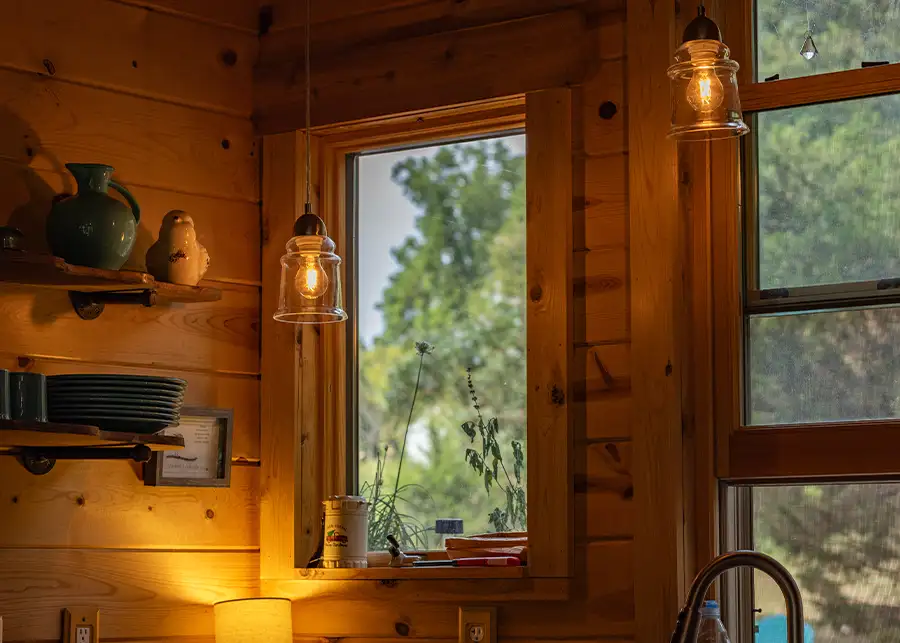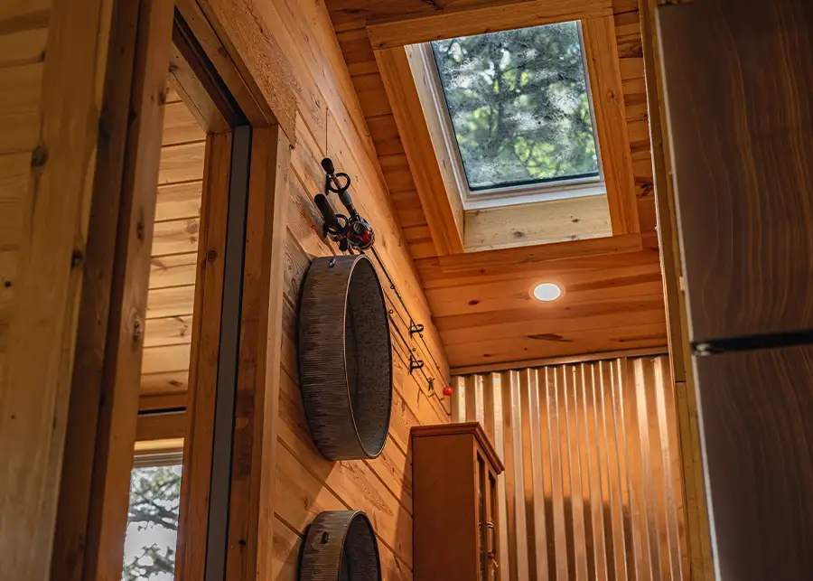 Use the bucket pulley on the back deck 20+ feet up in the air. There is a spacious living area and full kitchen. Large deck on the front and beautiful sunsets to enjoy while grilling or sitting around the firepit.