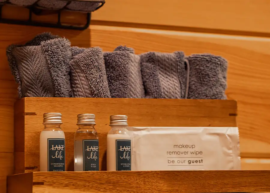 By the lake, guests have access to a canoe, kayaks, paddleboats, paddle boards, swim mats and fishing poles during their stay, along with a dock box full of life jacket in nearly every size! These are shared with the other rentals.