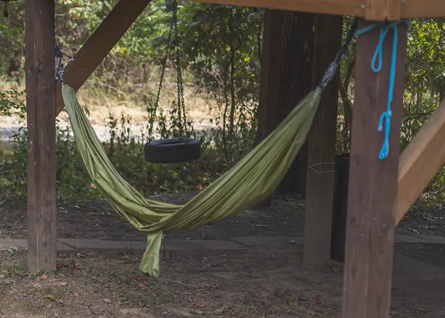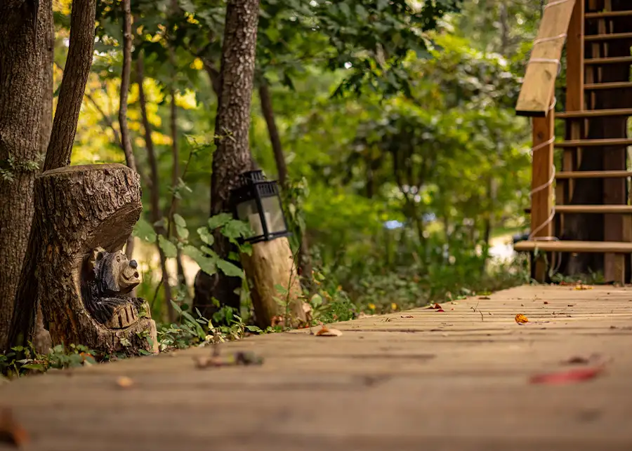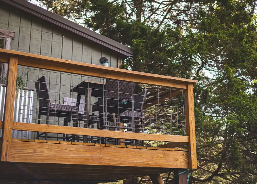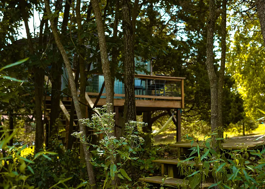 The Jaybird Treehouse is accessible up a staircase with handrails, and is locked using an electronic keypad for your convenience.
